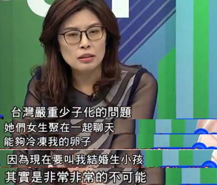 鄭麗文還表示,如今的臺灣白領女性討論最多的是“如何冷凍保存卵子”,因為沒房又沒錢,有事業心的女性“是非常非常不可能”去結婚生子的。更調侃也許對臺灣女生來說,男友送的最好的禮物就是給她錢讓她去冷凍卵子。