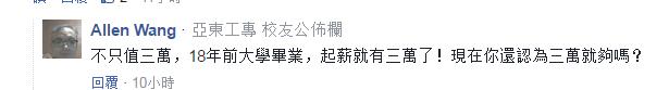 更有人表示3萬根本不夠,“18年前(臺灣)大學畢業生起薪就有3萬了”!