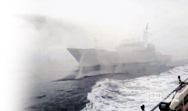 宜蘭蘇澳籍“東半球28號”漁船,4日遭日本公務船追逐,并以水砲攻擊。(圖片取自臺媒)