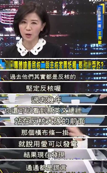 臺灣政論節目中的嘉賓也諷刺蔡英文當局,當初堅定反核,說用愛可以發電,“結果現在發現通通都是謊言”!
