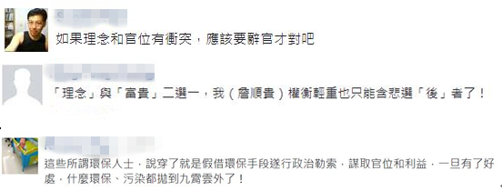 據(jù)臺(tái)灣“聯(lián)合報(bào)”報(bào)道,近日,臺(tái)灣“環(huán)保署副署長”詹順貴14日于環(huán)評(píng)大會(huì)中投下關(guān)鍵一票,讓深澳電廠環(huán)評(píng)修正通過一事在臺(tái)灣鬧得沸沸揚(yáng)揚(yáng),引發(fā)北部六縣市反彈,以及環(huán)保人士的集體抗議。這位從前的“環(huán)保斗士”的“驚天一投”讓昔日的戰(zhàn)友都深感被背叛,還稱“個(gè)人喜好不能凌駕‘法律’”更被網(wǎng)友諷刺:“如今換了位子就換了腦袋”。