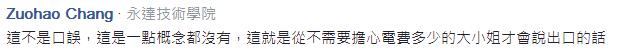 臺網友也忍不住嘲諷:“什么推論?都不用多搜集資料核實后再發言?光她穿長袖吹冷氣,2顆電池撐5天?”“有錢人怎么會懂電費要怎么算”“她不食人間煙火久矣!她說的都是天上的話。”“她吃法國菜配酒喝太多,一天到晚說醉話,都不知她再說什么!”“看她講錯了會不會道歉?”“只有電池有什么用,要用啥發電后蓄電呢?難道是愛!”