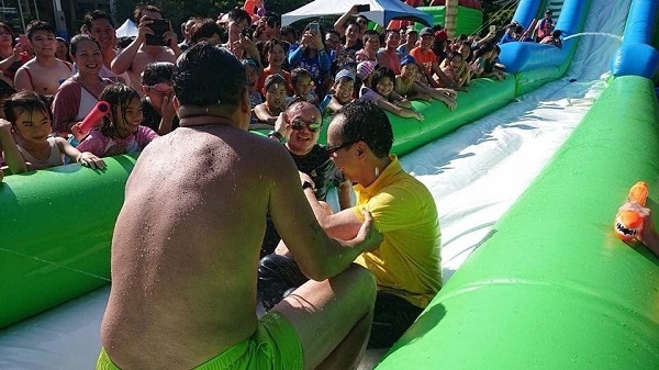 報道說,新北市長朱立倫昨天出席“五股兒童水樂園”活動,不僅和現場小朋友展開“水槍大戰”,還挑戰長40米的天空滑水道,與市民同樂。