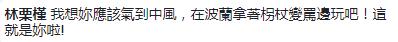 網友們紛紛留言“她現在豈不瘋掉了,淹大水耶!是全部南臺灣呢!”“邱大‘委員’這次怎么沒有講快要中風,你是以黨論黨嗎?”“氣到趕快去波蘭狂歡來壓壓驚咩”“你怎么不罵了?難不成你中風了?丟臉啊。”“現世報來的真快啊”“一個旗山人跑去金門玩,一個旗山‘立委’跑去波蘭玩,不知道這次屏東女兒要砸幾臺電視呢?”