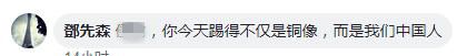 有網(wǎng)友留言表示:你今天踢的不僅是銅像,而是我們中國(guó)人!