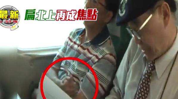 早前陳水扁乘高鐵北上,看到記者的鏡頭馬上伸出手來對著鏡頭抖。