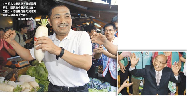 新北市長選舉最新民調(diào)顯示,國民黨參選人侯友宜(左圖),持續(xù)穩(wěn)定領(lǐng)先民進黨參選人蘇貞昌(右圖)。(圖片來源:臺灣“中時電子報”)