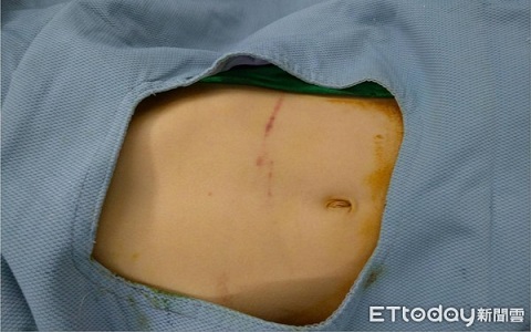 林雨利主任表示,雖然超音波檢查未發(fā)現(xiàn)有異狀,X光顯示腹部有漲氣,但抽血檢查發(fā)現(xiàn)其肝指數(shù)偏高,進一步做電腦斷層時,發(fā)現(xiàn)顯影劑有外滲情形,本來應(yīng)該在血管里的顯影劑已滲到腹腔,懷疑腸胃道有破裂情形,經(jīng)緊急開刀,赫然發(fā)現(xiàn)胃部下方幽門附近完全斷裂,斷裂的兩端正在出血,傷口平整,宛如遭利刃切斷,立即將斷成兩半的胃接合。