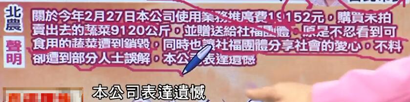 先是北農發出“聲明”,解釋了“誤會”,說當時啊滯銷的生鮮食品需馬上處理,因“彰化剛好有車輛在”,所以就直接由他們載回去,還表達了“因愛心遭到部分人士誤解”而遺憾的心情……
