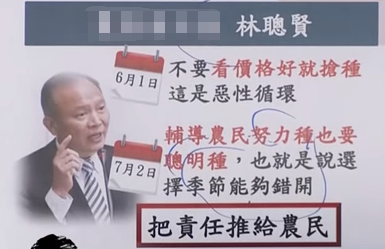 聽完林聰賢這番話,臺灣資深媒體人趙少康顯然不淡定了,他表示,民進黨當局不做事先的宣導,也沒有分享相關資訊,只是一句輕描淡寫的“聰明種”,就想要把責任推給農民嗎?