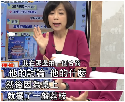 節(jié)目中,黃智賢還特別提到一個(gè)“小花絮”,采訪廣州臺商時(shí),她竟被一盤荔枝“迷住了”。