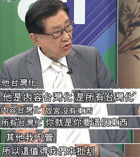 臺灣政論節目評論人葉耀鵬更表示陳其南的“故宮臺灣化”有兩點“值得批判”:一是見利忘義,二是不顧禮義廉恥。