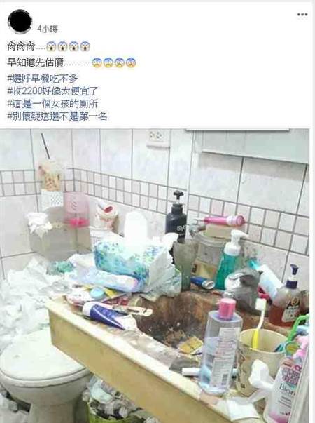 臟成這樣的廁所比公廁還不如!一名網(wǎng)友在《爆廢公社二館》PO出某位女子家中廁所,嚇歪網(wǎng)友。3個(gè)垃圾桶衛(wèi)生紙爆滿(mǎn),洗手臺(tái)、地板污垢黑到發(fā)亮,還有牙刷、洗面奶、洗手乳等衛(wèi)生用品到處放,神奇的是還有一張百元鈔掉在水桶里,很難想象這里有女孩子生活過(guò)。對(duì)此,原PO驚恐寫(xiě)下,“XXX,早知道先估價(jià)……收2200元清潔費(fèi)好像太便宜了”,慶幸自己早餐吃不多,沒(méi)嘔吐真是太好了!