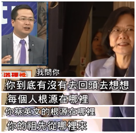 前馬辦副秘書長羅智強在節目中質問蔡英文,你就沒想過自己的祖先從哪來嗎?