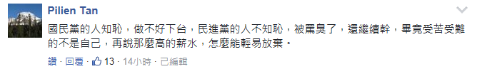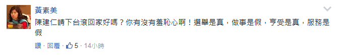而以民進黨一貫的作風,在出了事之后,也絕不會這么輕易認輸投降。果不其然,就在昨天,陳建仁于臉譜網貼文致歉,還提到自己沒有防災職權,以求避免跟當年薛香川同樣的下場。可惜的是,網友對此并不買賬,甚至紛紛吐槽“這種行徑很惡劣你知道嗎?”“以前罵別人罵得很過癮,現在是現世報!”