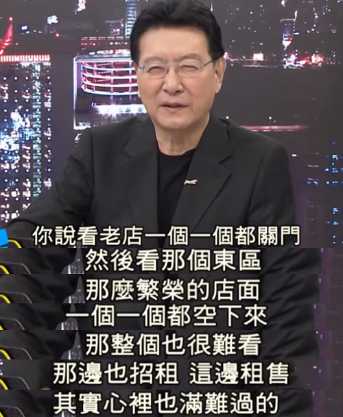 看到很多老店歇業倒閉、商圈沒落、攤商市場淪為招租售牌基地,臺灣資深媒體人趙少康也不免感嘆,“心里非常的難過。”
