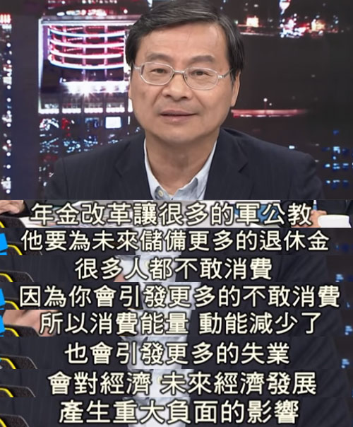 俗話說,有錢男子漢,沒錢漢子難。要想刺激消費,那當然得要工資翻倍,可誰成想,人家蔡當局偏偏來了個釜底抽薪,狂砍軍公教退休金……自打7月軍公教年改上路以來,很多軍公教人士的退休金瞬間被砍數千到2、3萬元新臺幣不等。許多老年人為了多攢點兒養老本,開始勒緊褲腰帶,不敢花錢,而這對消費市場來說具有極強的殺傷力。