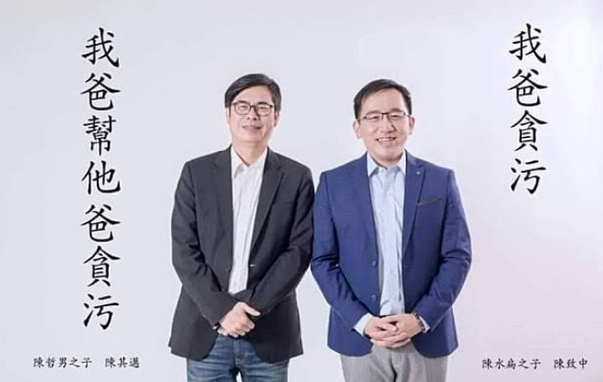 下面這張圖跟網(wǎng)友的評(píng)論堪稱絕配了~陳水扁之子與陳哲男之子的“貪污二代CP”.