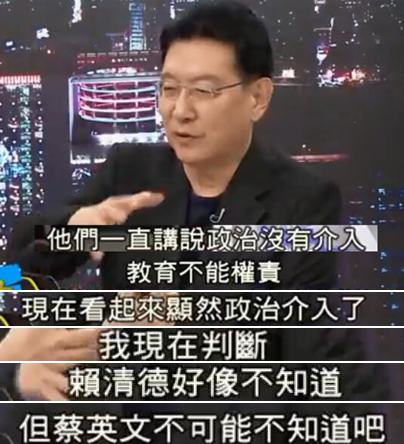 政論節目主持人趙少康的判斷是:賴清德好像不知道,但蔡英文不可能不知道!