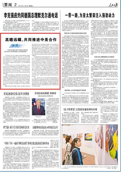 人民日?qǐng)?bào)鐘聲:高瞻遠(yuǎn)矚 共同推進(jìn)中美合作