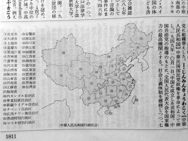 《廣辭苑》中的中國(guó)行政區(qū)劃圖。