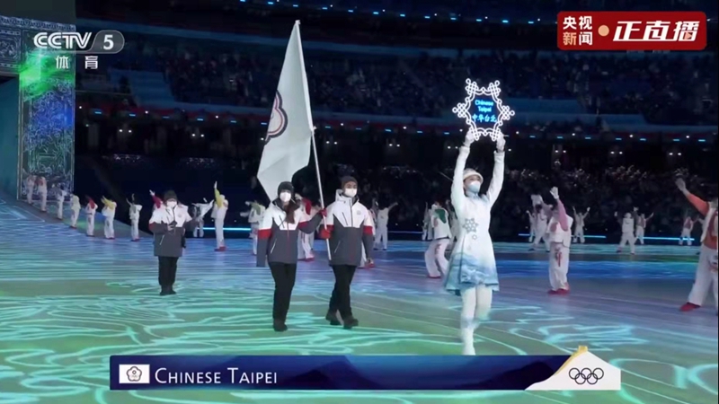 北京冬奧會開幕式上,當中國臺北代表團入場時,全場掌聲雷動。(央視視頻直播截圖)