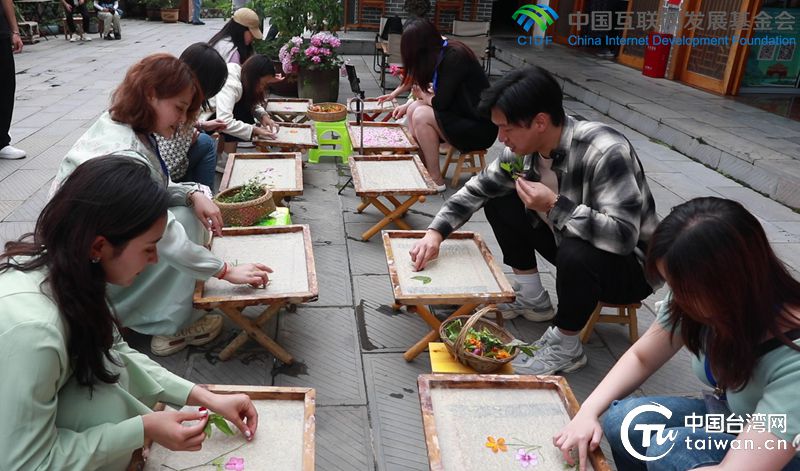兩岸聯合采訪團走進花茂村體驗古法紙漿壓花畫。(中國臺灣網記者 吳曉龍 攝)