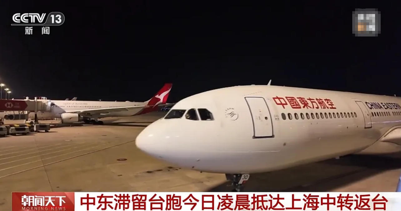 3月10日凌晨4時許,搭載70余名臺灣同胞的MU704航班平安抵達上海浦東國際機場。(圖為央視報道截圖)