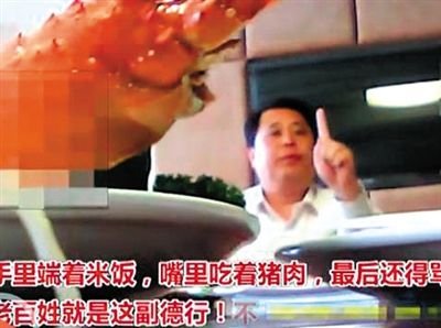 9月13日,網(wǎng)上出現(xiàn)“河北省興隆縣孤山子鎮(zhèn)書記邊大吃大喝邊辱罵人民百姓”的視頻。視頻顯示,眾人喝的是五糧液、抽的是中華煙,酒桌上擺著螃蟹、龍蝦、烤鴨等。孤山子鎮(zhèn)黨委書記梁文勇吃飯過程中說:“手里端著米飯,嘴里吃著豬肉,最后還得罵你娘。老百姓就是這副德行!不能給臉,給臉不要臉!”被證實一經(jīng)發(fā)出即引起網(wǎng)民廣泛關(guān)注。