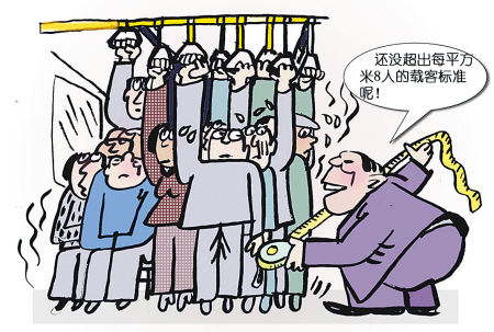 近來,多年前制定的公交車超載標準被公眾質疑不合實際。按照國家相關標準,公交車基本不可能出現(xiàn)超載現(xiàn)象。據(jù)建設部2001年印發(fā)的《城市建設系統(tǒng)指標解釋》,公交車額定載客量的計算公式為:客位數(shù)=車廂固定乘客座位數(shù)+車廂有效站立面積(平方米)×每平方米允許站立人數(shù)。在1987年的公交車載定人數(shù)標準中,“每平方米允許站立人數(shù)”多達8人。而事實上,公交車再擠,1平方米也很難擠下8人,因此再擁擠的公交車都算不上“超載”。(今日《西安日報》)
