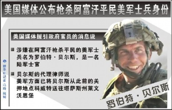 涉嫌槍殺16名阿富汗平民的美國(guó)大兵羅伯特·貝爾斯22日將在美國(guó)受到起訴,從此開(kāi)始預(yù)計(jì)將很漫長(zhǎng)的司法審理程序。