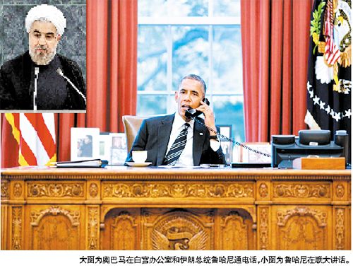 魯哈尼27日結(jié)束在美國紐約聯(lián)合國總部之行,啟程返回伊朗。兩人通電話時,魯哈尼正乘坐汽車前往機場,奧巴馬則在白宮辦公桌旁。