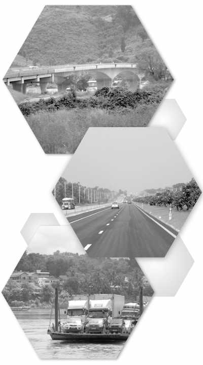 打開亞洲開發(fā)銀行提供的大湄公河次區(qū)域(GMS)經(jīng)濟(jì)走廊發(fā)展規(guī)劃,幾條主要公路貫穿東南亞:從中國廣西憑祥友誼關(guān)口岸經(jīng)越南河內(nèi)往南,經(jīng)泰柬邊境城市波貝向西北部通往泰緬邊境達(dá)府的亞洲1號公路,是南部經(jīng)濟(jì)走廊的主要公路之一;從緬甸大其力經(jīng)泰國清萊、曼谷一路向南通往馬來西亞和新加坡的亞洲2號公路以及從中越邊境河口口岸向南通往越南河口的14號公路,這是南北經(jīng)濟(jì)走廊的重要命脈;從泰國東部莫拉漢往西經(jīng)泰緬邊境達(dá)府通往緬甸毛淡棉的橫貫東南亞的亞洲16號公路,為東西經(jīng)濟(jì)走廊服務(wù),這條公路一旦打通,可把越南、老撾、泰國和緬甸連接在一起,向西可達(dá)安達(dá)曼海,向東可達(dá)南海。