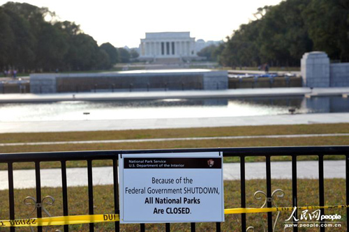 自10月1日起,華盛頓國(guó)家廣場(chǎng)周邊處處掛著關(guān)閉的告示。收藏有美國(guó)《獨(dú)立宣言》、《美國(guó)憲法》和《人權(quán)宣言》等“國(guó)寶”的美國(guó)國(guó)家檔案館入口處貼著一張告示,寫(xiě)道:“由于聯(lián)邦政府關(guān)閉,國(guó)家檔案館因此關(guān)閉。”林肯紀(jì)念堂等國(guó)家公園已停止向游人開(kāi)放,林肯紀(jì)念堂前新豎起的圍欄處掛出一塊牌子,寫(xiě)道:“因聯(lián)邦政府關(guān)閉,所有國(guó)家公園關(guān)門(mén)!笔访苌瓕W(xué)會(huì)是美國(guó)唯一一所由美國(guó)政府資助、具有半官方性質(zhì)的博物館機(jī)構(gòu),其在華盛頓的多家博物館和國(guó)家動(dòng)物園也同時(shí)全部關(guān)閉。在華盛頓市中心的國(guó)家廣場(chǎng)內(nèi),所有噴泉全部停開(kāi)。