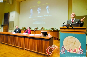 諾貝爾獎評選委員會說,三位獲獎者的研究成果揭示了細胞如何在準確的時間將其內部物質傳輸至準確的位置,揭示出細胞生理學的一個基本過程。