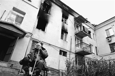 烏克蘭危機爆發以來,烏東部地區民眾生活受到嚴重影響。圖為日前頓涅茨克的一名老人坐在被毀壞的建筑前企盼國家早日恢復和平。