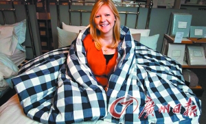 ▲一名羽絨被試睡員正在工作。