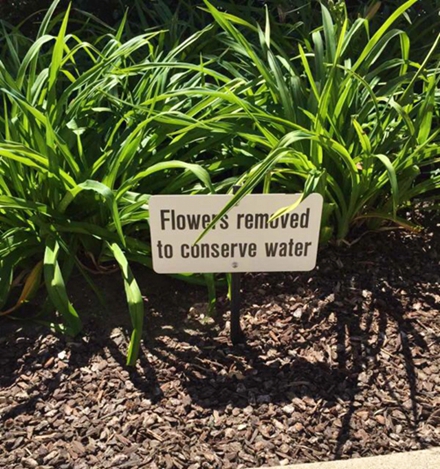人民網舊金山5月5日電 (韓莎莎)硅谷一些公司前的花坪里新翻的土鋪著木屑,嫩綠的低矮草叢在陽光下閃著光。引人注目的是,不止一處花坪前豎著一塊木板,寫道:“為了節(jié)水,花被移除。”