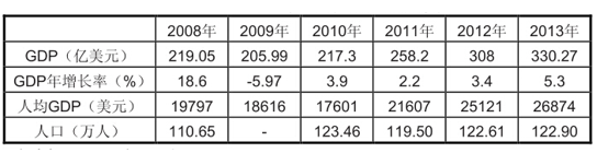 圖二:巴林主要經(jīng)濟(jì)數(shù)據(jù)圖(2008—2013年)