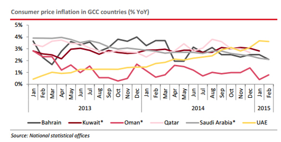 圖四:2013—2015年海灣國(guó)家消費(fèi)者價(jià)格水平變化