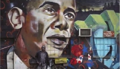 ■ 在肯尼亞首都內羅畢街頭,奧巴馬的形象被畫成壁畫 圖 GJ