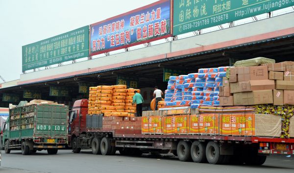 臨沂蘭山物流園的商家在搬運發(fā)往中東和中亞的貨物(5月4日攝)。新華社記者范長國攝