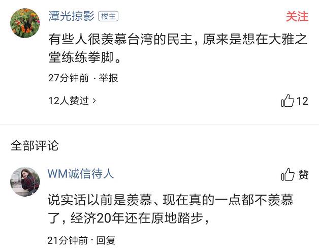 很多年前,“臺式民主”曾經(jīng)給一些大陸人留下過不錯(cuò)的印象;但隨著信息的開放,當(dāng)大陸網(wǎng)友對臺灣政壇有了更深入、更直觀的認(rèn)識后,“臺式民主”的神秘感消失了,大陸網(wǎng)友的崇拜感和臺灣網(wǎng)友的優(yōu)越感也在消失。再加上,大陸網(wǎng)友自身的制度自信不斷增強(qiáng),對“臺式民主”很容易產(chǎn)生“本以為是個(gè)王者,沒想到是個(gè)青銅”的感覺。
