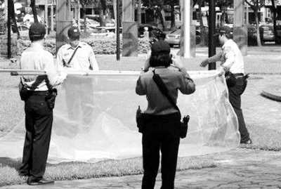 因應越來越多的丟鞋事件,臺灣警方日前已經下達通知,要求各縣市警局把攔鞋網列入必備裝備。據報道,這種攔鞋網最高可拉長到6到8米,高達3層樓,網眼只有0.2厘米大,密到連蛋汁都能擋得下來。