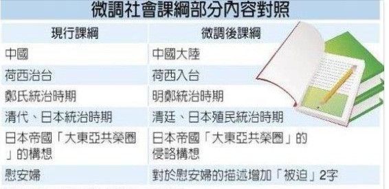臺灣最近對課綱的一次修改是今年7月3日,臺灣“教育研究院”又正式公布了“12年‘國教’社會領域課綱草案”。其中高中歷史的中國史部分被大改:廢除中國史,將之并入東亞史,把歷史課綱從現在的臺灣史、中國史、世界史,改成臺灣史、東亞史、世界史。