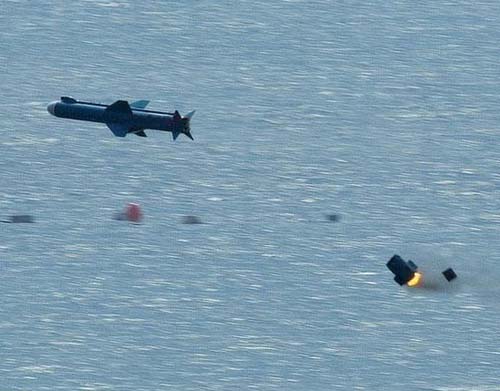 圖片說明:臺軍雄風IIE反艦導彈飛行中拋掉二級發動機(資料)