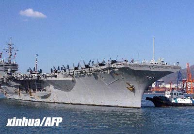 3月14日,美國海軍“小鷹”號航空母艦搭載著5000多名美國海軍官兵以及60架戰機,抵達韓國南部港口釜山。 (新華社/法新 圖)