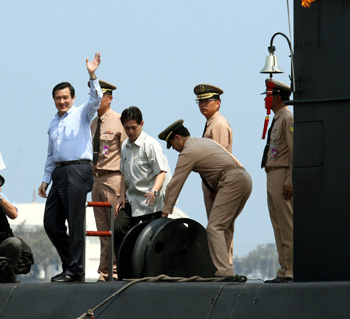 馬英九登上潛艇“海豹”。