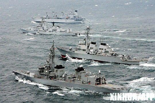 2007年4月16日,日本海上自衛(wèi)隊(duì)和美國(guó)、印度海軍的軍艦在日本房總半島附近的太平洋海域進(jìn)行聯(lián)合訓(xùn)練。新華社/法新