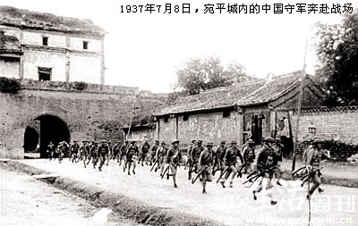 1937年7月7日,日軍在盧溝橋回龍廟附近進(jìn)行挑釁性的軍事演習(xí),隨后,炮轟宛平城。中國(guó)守軍奮起抵抗,全國(guó)抗日戰(zhàn)爭(zhēng)從此開(kāi)始。
